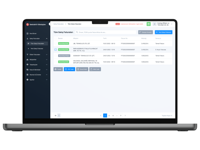 Sekizbit e-Dönüşüm pratik ve modern bir arayüze sahip. Kestiğimiz tüm faturaları tek bir sayfada görebilmemiz işimizi kolaylaştırdı.